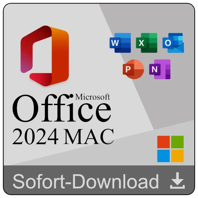 Das Office 2024 MAC Standard bietet Ihnen eine visuelle Darstellung Ihrer Dokumente an. Sie können dieses Microsoft Office Produkt online bei uns bestellen und in Sekundenschnelle als Sofort-Download per E-Mail erhalten. Diese Software ist für Privatanwender, Unternehmen und Behörden gleichermaßen geeignet, da hier alle Anforderungen erfüllt werden, mit denen sich eine effektive Bürosoftware auszeichnet. Briefe, Notizen, Tabellen und Präsentationen können effektiv erstellt, bearbeitet, verschickt und in die Cloud geladen werden. Office 2024 MAC Standard ist das ideale Werkzeug zur Bewältigung Ihrer spezifischen Anforderungen und zur Erzielung der bestmöglichen Ergebnisse. Microsoft Office 2024 MAC Standard jetzt kaufen und Sofort-Downloaden. Nach Erhalt des Sofort-Downloads können sie mit dem Product Key online aktivieren.✔ Word 2024 MAC: Professionelles Schreiben von Texten.✔ Excel 2024 MAC: Professionelles Erstellen von Tabellen.✔ PowerPoint 2024 MAC: Präsentationen zu erstellen war noch nie so einfach.✔ Outlook 2024 MAC: Verwalten Sie bequem Ihre E-Mail-Konten.✔ OneNote 2024 MAC: Notizen flexibel, überscihtlich und umfangreich erstellen